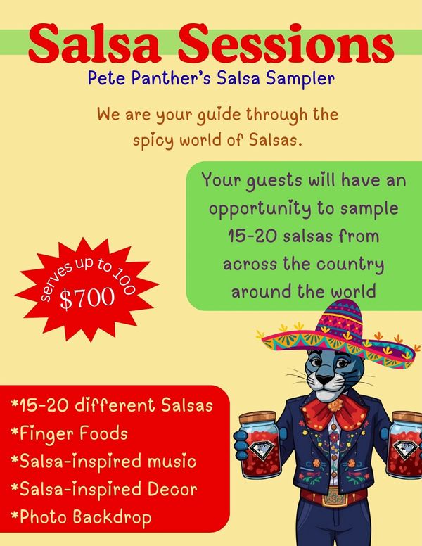 Let the Blue Panther Party ounce on your residents with a ton of Salsas from all over to wake the palette and test the heat tolerance. It's a lot of fun.